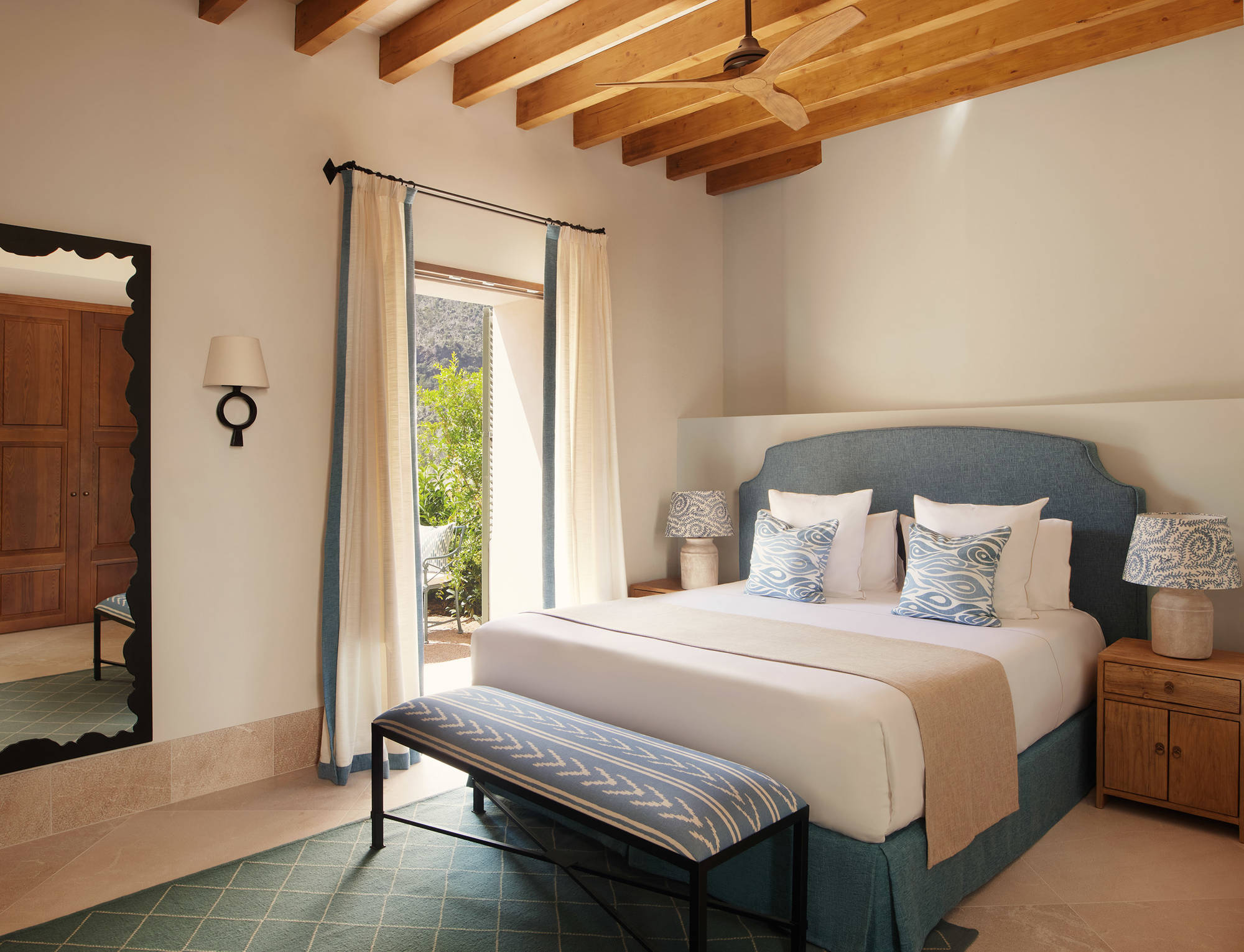 Located on the ground floor of the main manor house, these rooms spill out onto their own private terrace, so you can soak up the Mallorcan sunshine or enjoy a glass of wine al fresco as dusk falls. Decked out in plenty of beautiful, traditional textiles, calming colours, and soft furniture, these fresh, airy spaces are perfect for lazy days and dreamy nights.