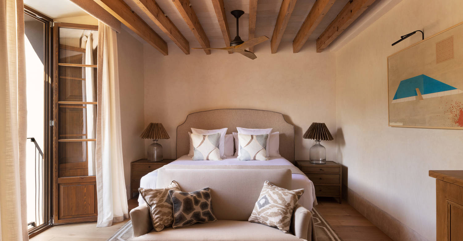 Wake up in the morning, throw open the curtains and breathe it all in: fresh mountain air, beautiful views and dazzling sunshine. Welcome to mesmerising Mallorca. Situated in the main manor house of our luxury Mallorca hotel, the Mountain View rooms sleep two in a king-size or twin bed, with a relaxing shower and bath in the en-suite, and two rooms featuring only a shower. Each calming space has been thoughtfully decorated to reflect traditional Mallorcan design elements, and you’ll find every modern comfort, with beautiful bespoke textiles, all around.
